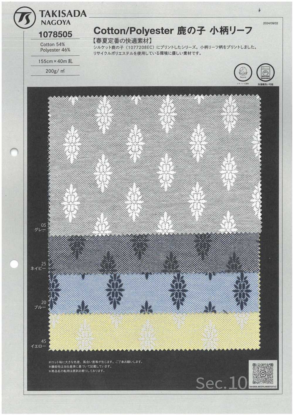 1078505 棉/聚酯纖維鹿子單珠地佈料,小葉子圖案