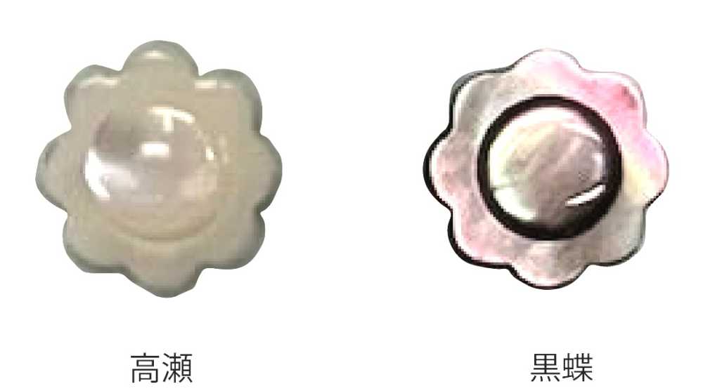 這些是花朵形狀的貝殼紐扣。它們飾有精美的花卉圖形元素,並散發著珍珠紐扣的優雅光澤,非常適合女士襯衫和罩衫。