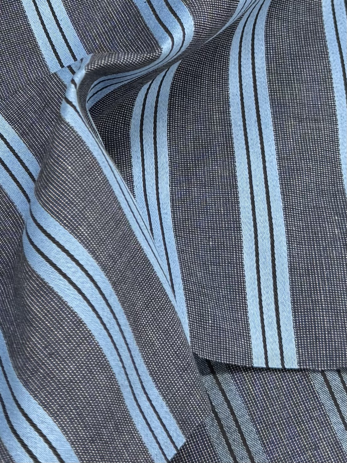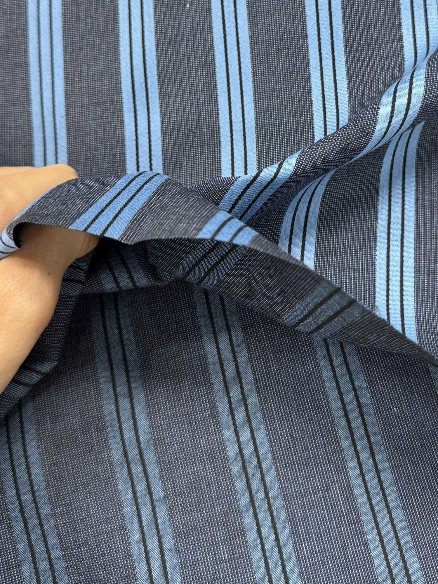 這款100%純棉條紋口袋裡料,織紋細膩,可用於男裝腰背面,也可用於各種里料、貼面。