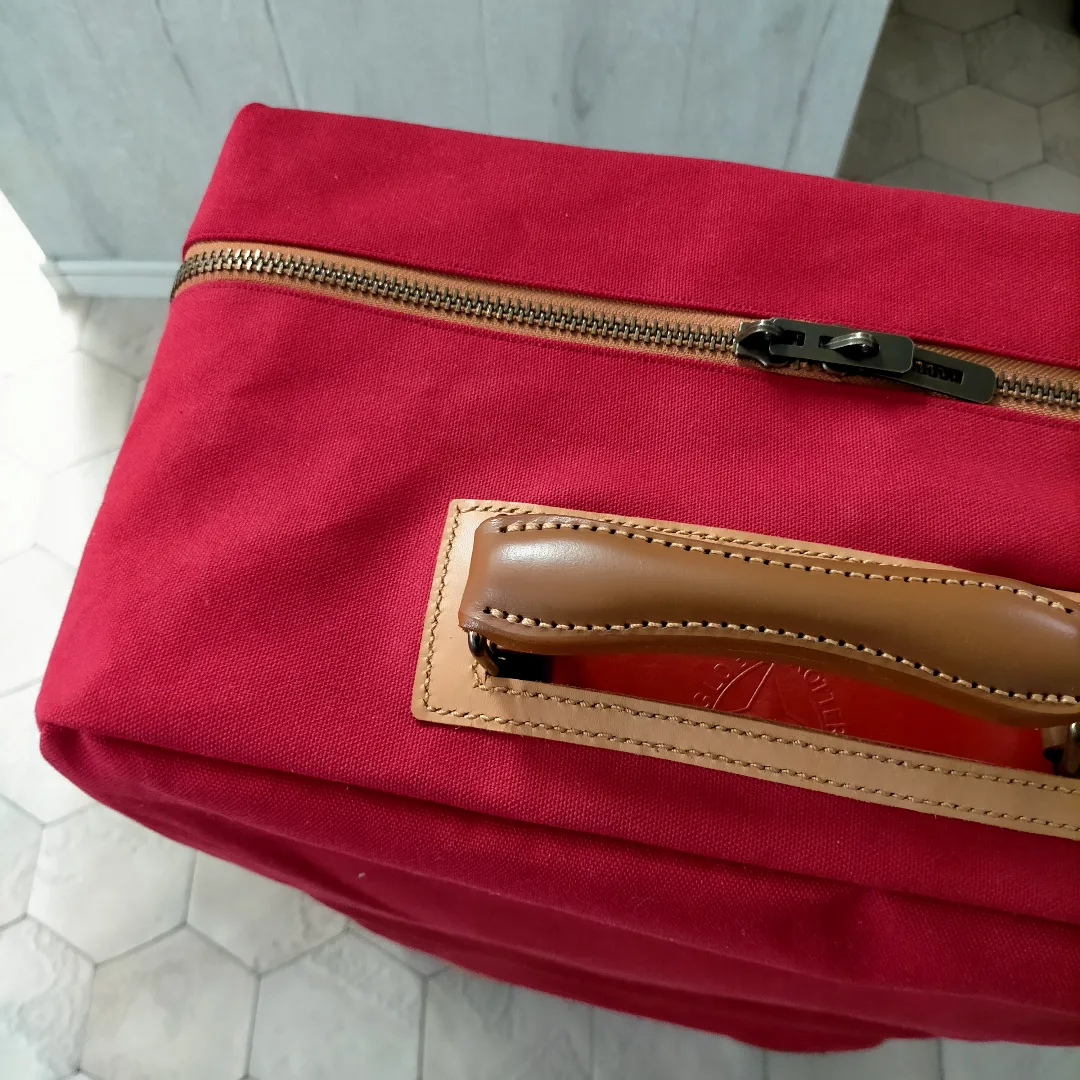 這款棉質帆布採用8號棉帆布糊付加工,經過上漿處理,手感張力。它是經典款的中等重量材料,顏色豐富多樣。它還具有防潑水,採用無氟防潑水劑。由於採用水洗加工直接染色,材質可以水洗,打造復古風格。我們共有88種顏色的庫存。